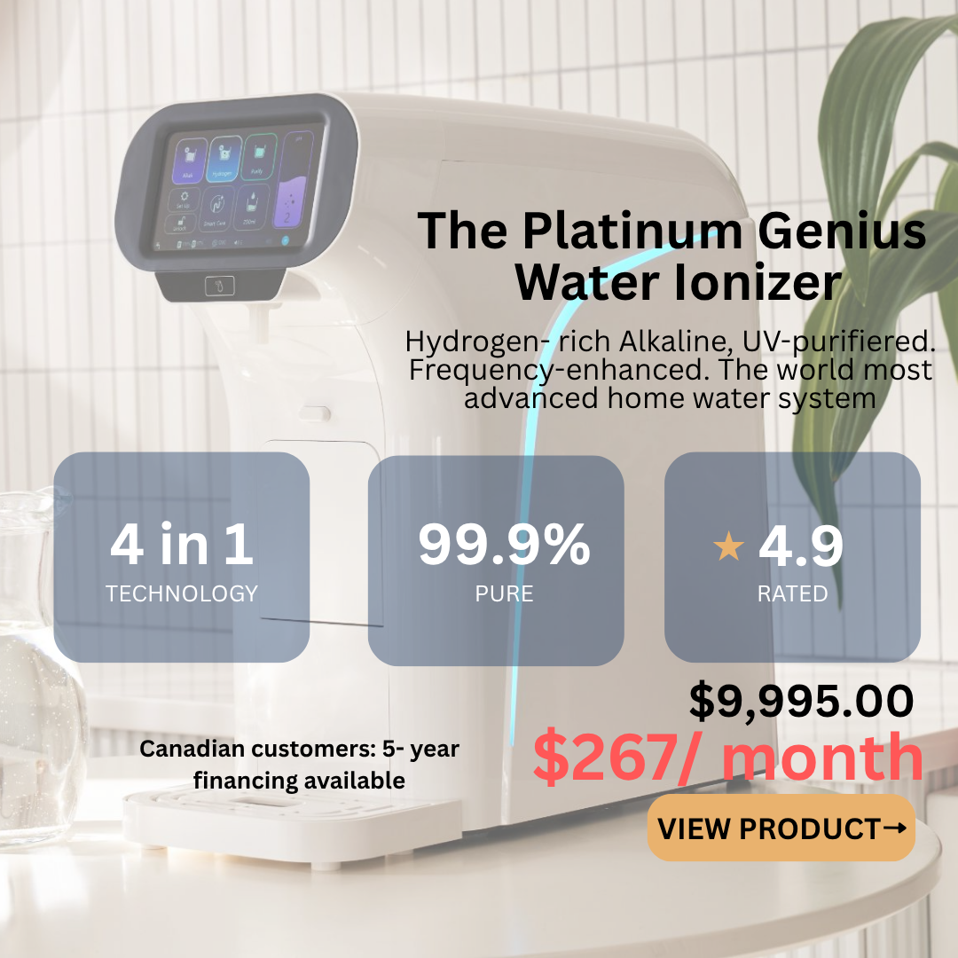 The Genius Water Ionizer – a breakthrough in hydration technology that gives you pure, alkaline, mineral-rich water at the touch of a button. Ditch the plastic bottles and enjoy the smartest way to stay healthy, hydrated, and energized every day.