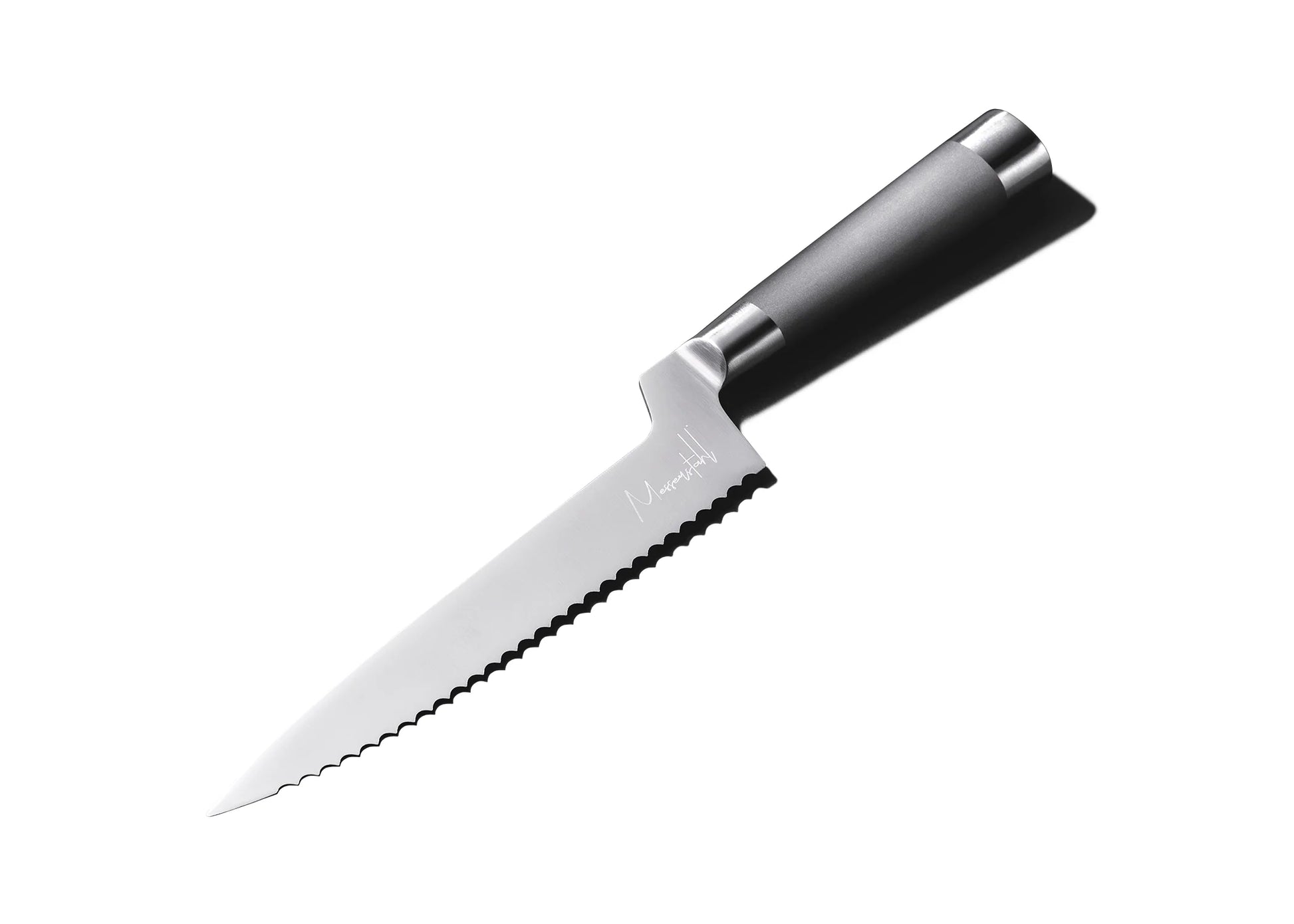 - 8” Offset Bread Knife: Knife of choice for hard-crusted bread and thick-skinned fruits.
